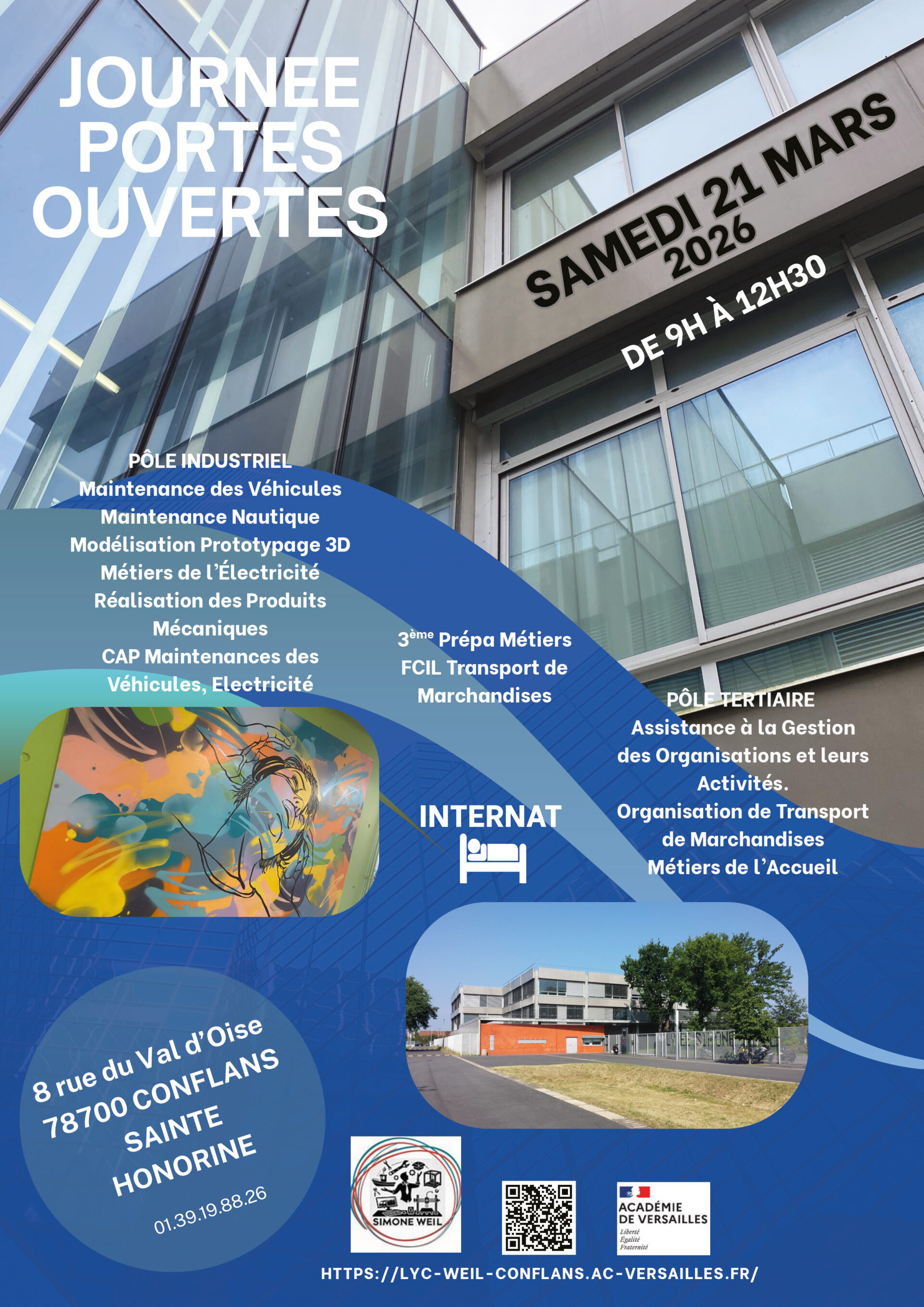 Samedi 21 mars 2026, de 9h à 12h30, venez échanger avec les enseignants, visitez l’établissement et découvrez les différentes formations proposées par le lycée Simone-Weil.