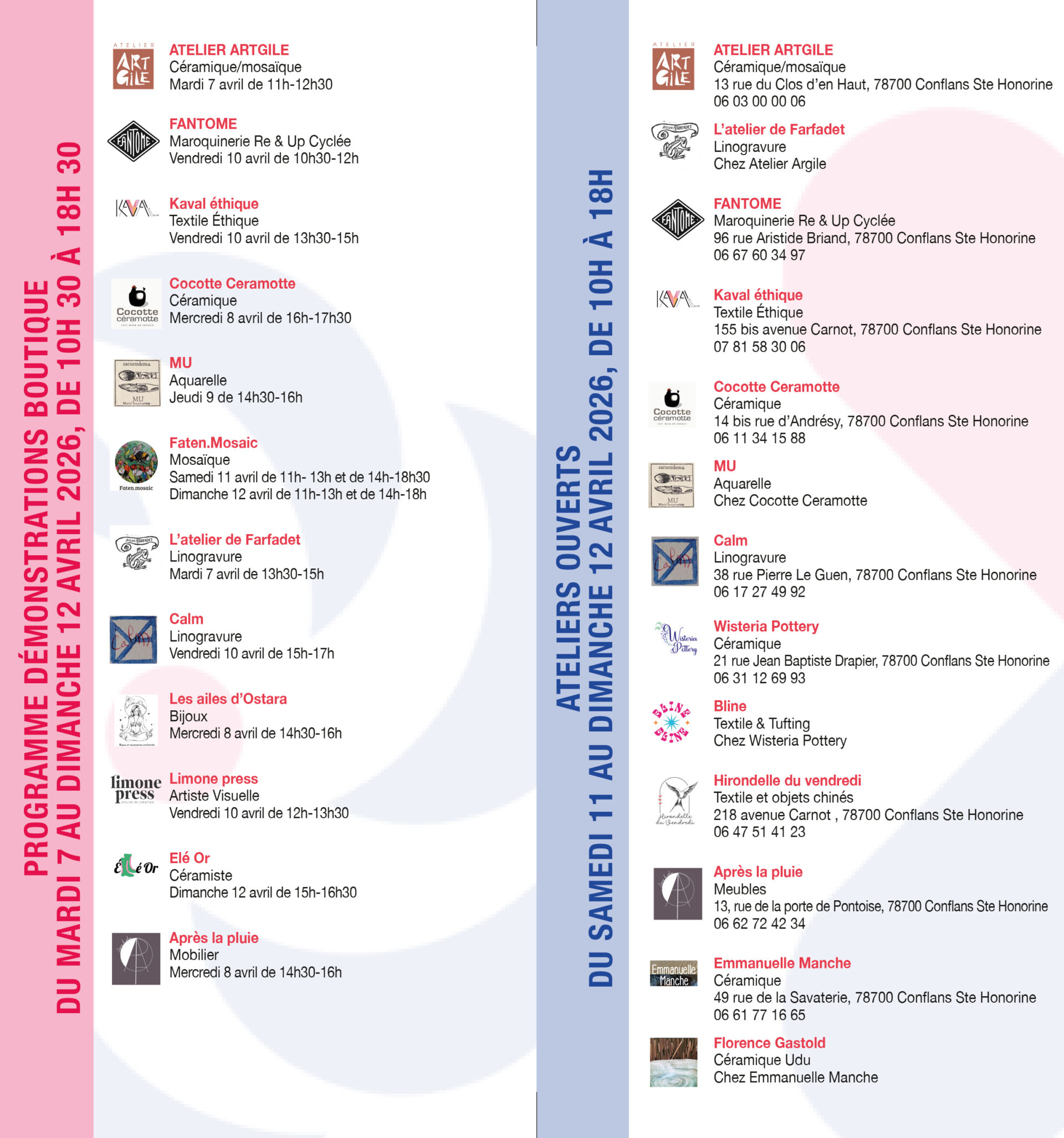 Les ateliers ouvriront même leurs portes pour vous accueillir dans toute la ville le week-end du 11 & 12 avril (de 10h à 18h).